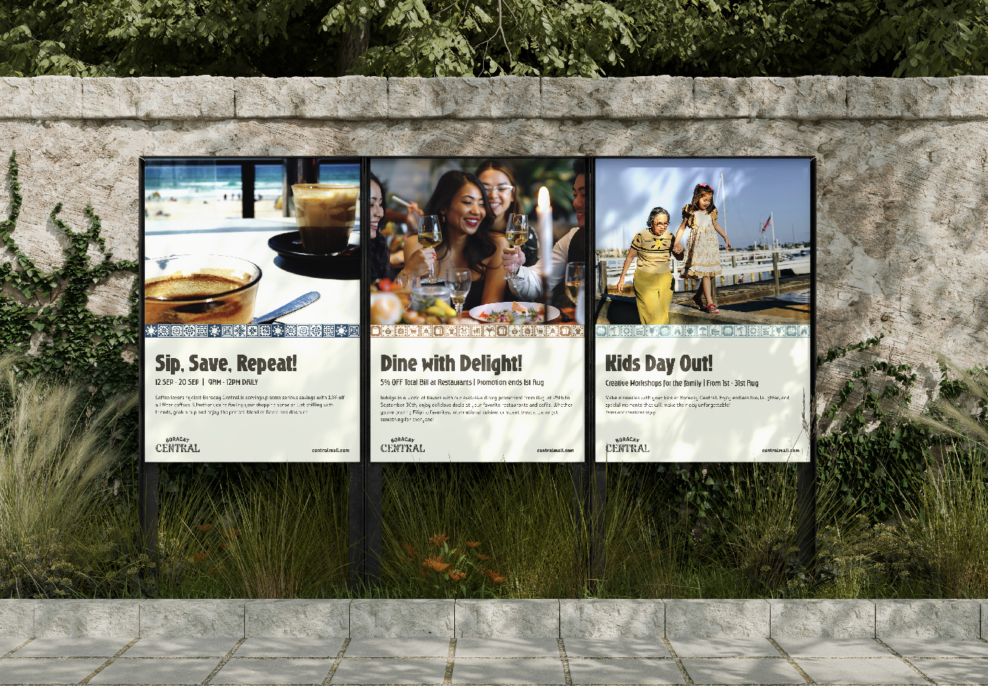 Set apart from the beachfront, Boracay Central required a strong identity to stand out as more than just another mall. The challenge was to highlight its role as a community anchor - a place where people can recharge, reconnect, and enjoy quality experiences with family and friends.
